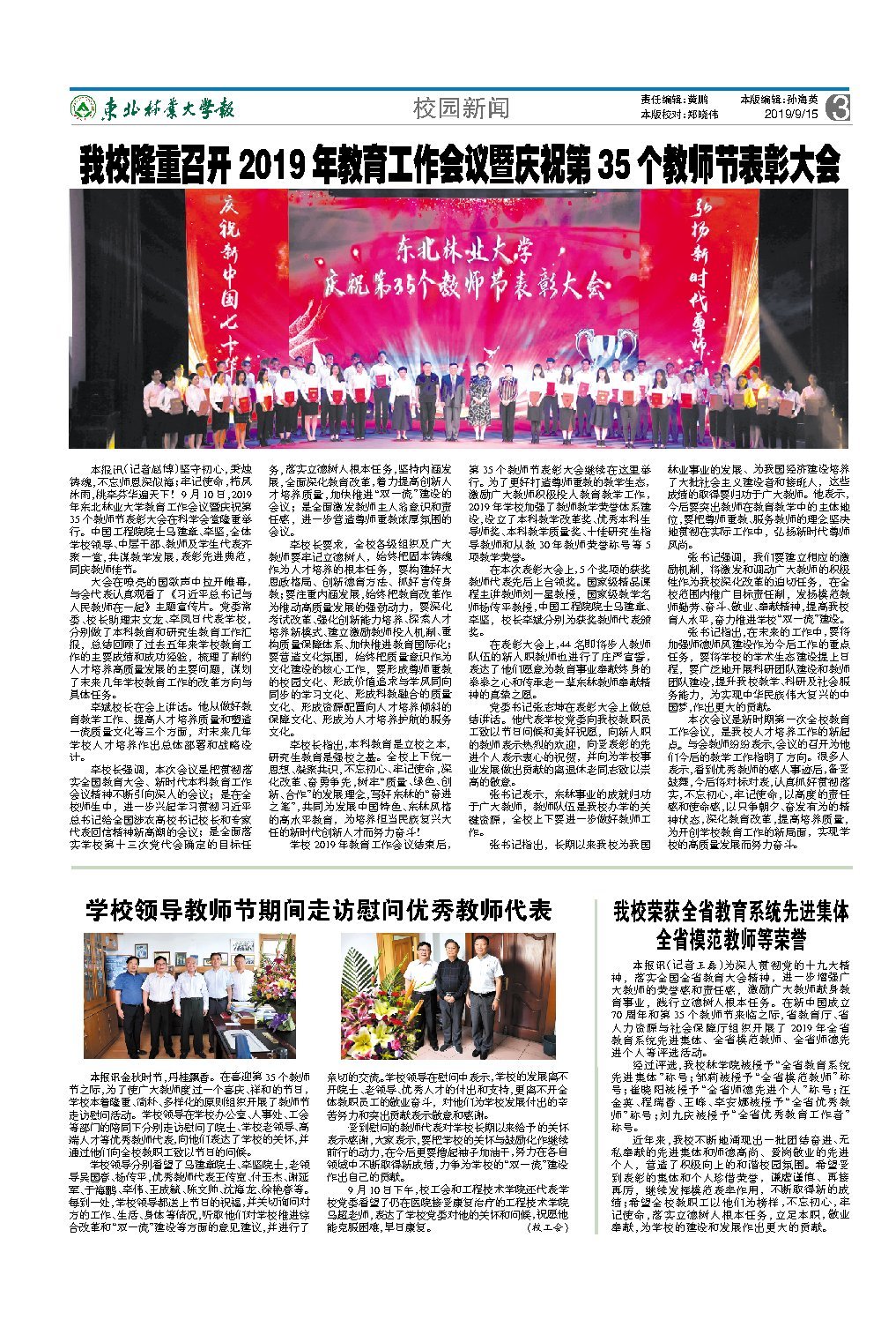东北林业大学举行教育工作会议暨教师节表彰大会,表彰先进典范,共谋教学发展。会议强调了人才培养、教育改革和质量意识的重要性,加强了教师教学荣誉体系建设,设立了多项教学荣誉奖项。与会教师纷纷表示会议指明了方向,将继续深化教育改革,提高培养质量,为实现学校的高质量发展而努力奋斗。
