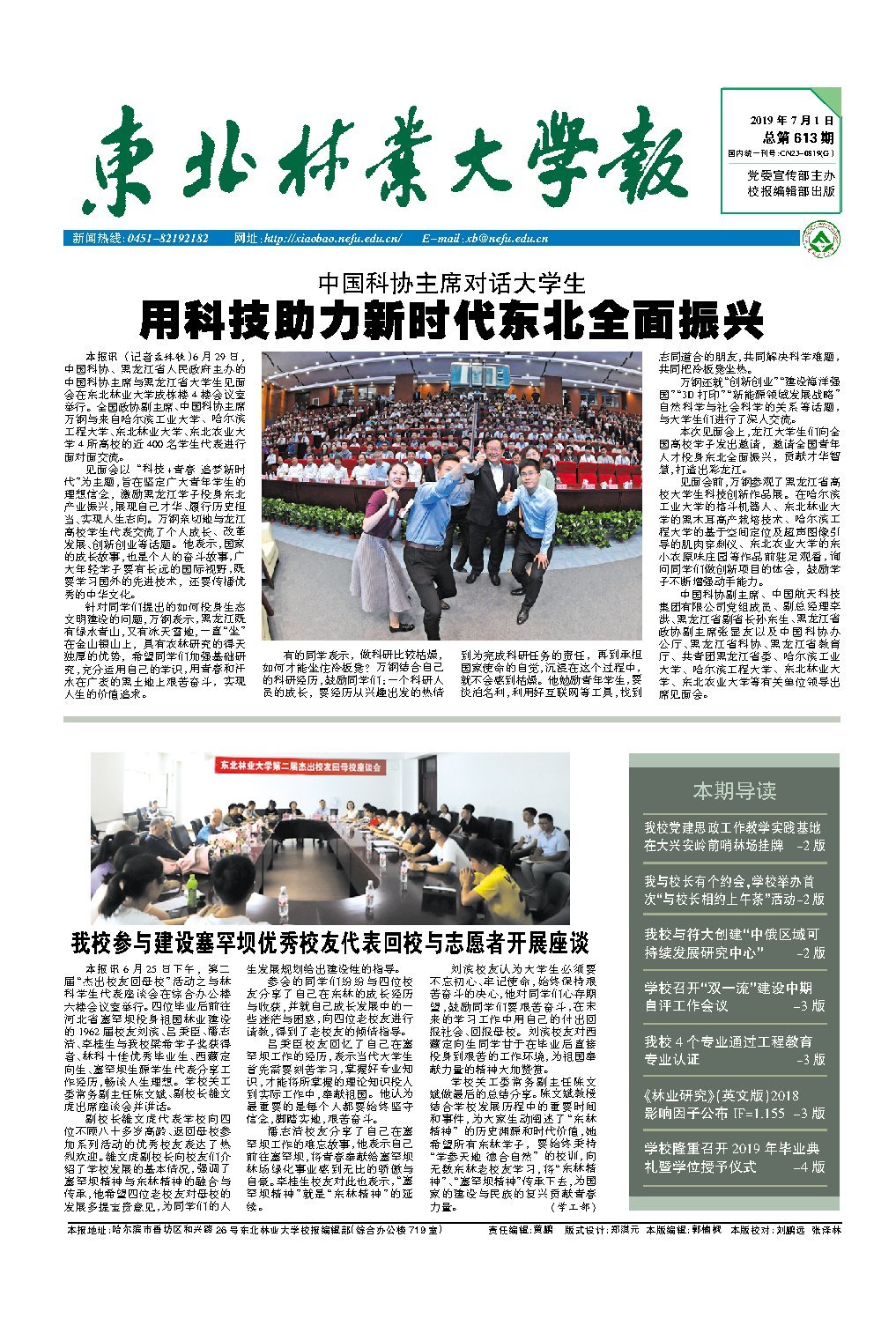 中国科协主席与黑龙江省大学生见面会在东北林业大学举行,全国政协副主席万钢与近400名学生代表进行面对面交流。见面会以“科技+青春追梦新时代”为主题,旨在激励青年学生投身东北产业振兴,万钢鼓励学生们淡泊名利,利用互联网等工具找到志同道合的朋友,共同解决科学难题。李洪、孙东生、张显友等领导出席见面会。