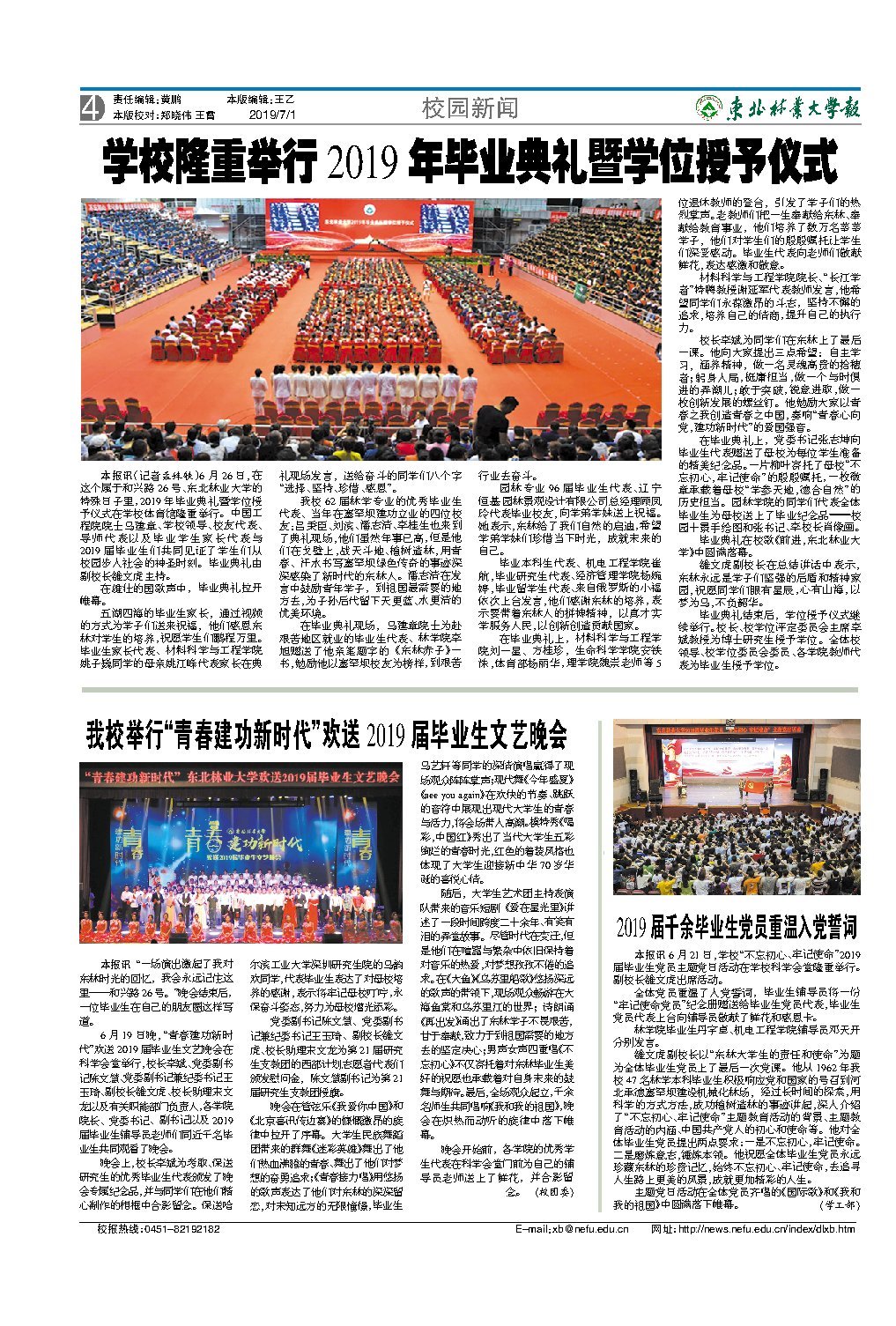 东北林业大学举行了2019年毕业典礼暨学位授予仪式,学生们从校园步入社会的神圣时刻。家长代表和校友代表都上台发言,鼓励毕业生们珍惜感恩,勇往直前。毕业典礼上,老教师们登台引发了热烈掌声,毕业生代表向老师们敬献鲜花,表达感激和敬意。校长李斌为毕业生们提出了三点希望,并送上了精美纪念品。随后,学位授予仪式继续举行。
